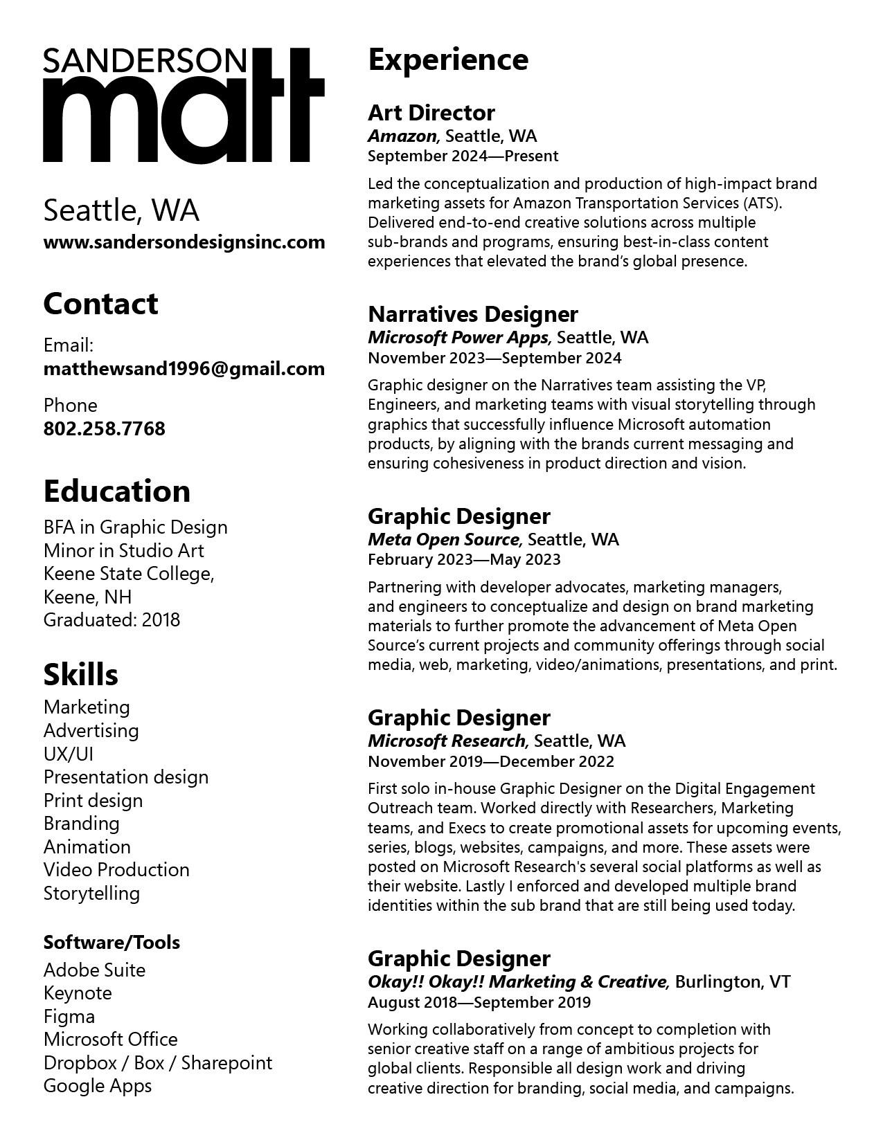 Hello, my name is Matt and I'm a Graphic Designer based in the Seattle, WA area. I’m originally from the east coast and have experience working at agencies and corporations of all sizes.
